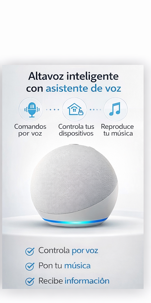 - Control por voz total: Controla dispositivos inteligentes, luces, termostatos y más con simples comandos de voz